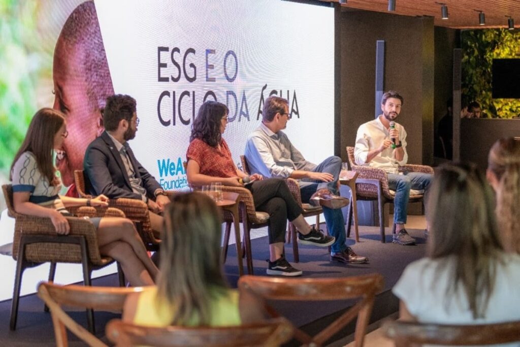 Evento promovido pela We Are Water Foundation e a ONG World Vision no Brasil, com a presença de Luana Pretto, CEO do Instituto Trata Brasil, Thiago Crucciti, diretor da Visão Mundial no Brasil e Rubens Filho, gerente do ODs 6 do Pacto Global da Onu, mediado por Marina Filippe | Foto: FD Fotografia